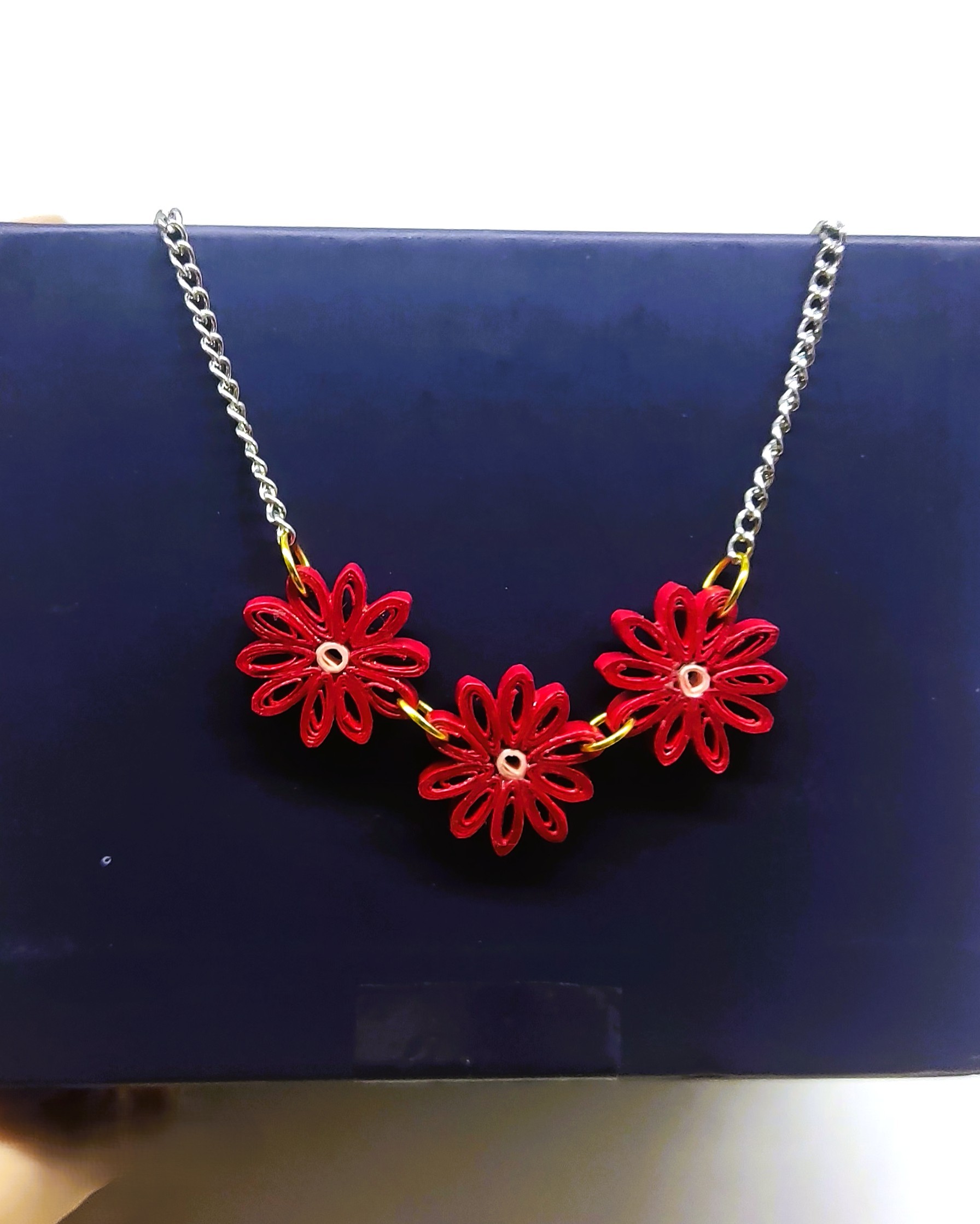 Bright red blooms, strung with grace. This delicate chain necklace brings a touch of handcrafted floral charm to your everyday. The contrasting colors and delicate design make it perfect for layering or wearing on its own.